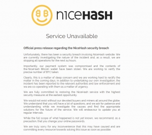 NiceHashがService Unavailable(サービス停止中)